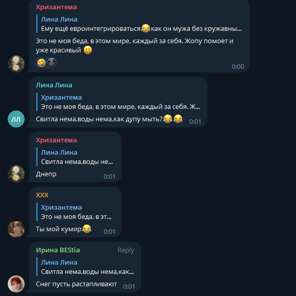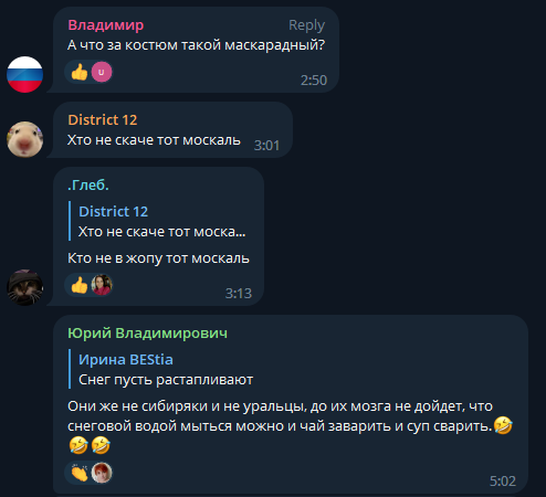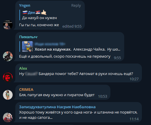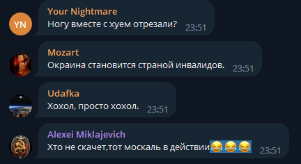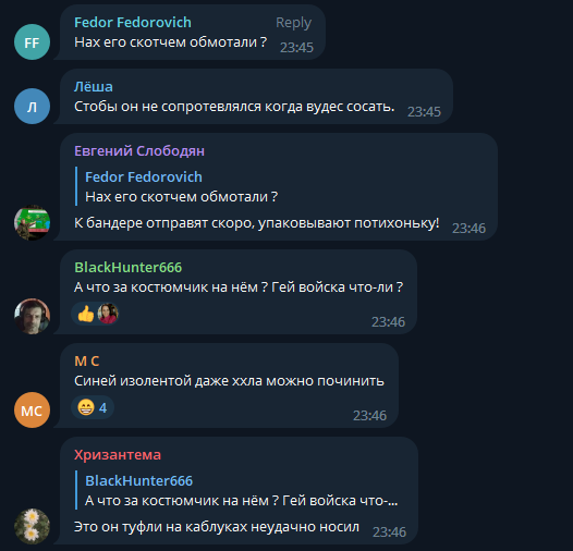 Here is a single post and 155 comments from a russian telegram channel posting about dead or wounded Ukrainians.