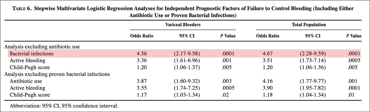 And on a multivariate analysis, ONLY bacterial infections predicted early rebleeding.