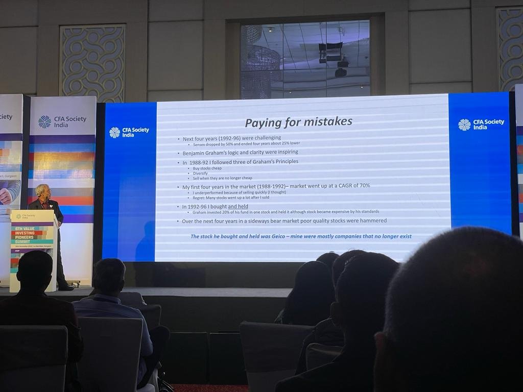 • On multiples: If he finds that multiples after 2-3 years will be at reasonable levels he takes a position.