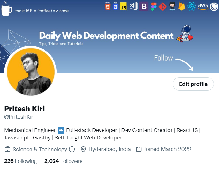 I started twitter three months back when there was a huge hype of the tech twitter community. I have seen @Prathkum and @kunalstwt promoting this community.