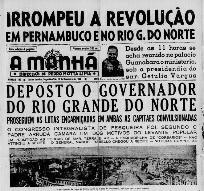 Organizado pela Aliança Nacional Libertadora (ANL) e apoiado pelo Partido Comunista do Brasil (antigo PCB), o levante logrou a instalação de um governo revolucionário em Natal e fomentou focos insurrecionais no Recife e no Rio de Janeiro, mas foi debelado em poucos dias. 2/30