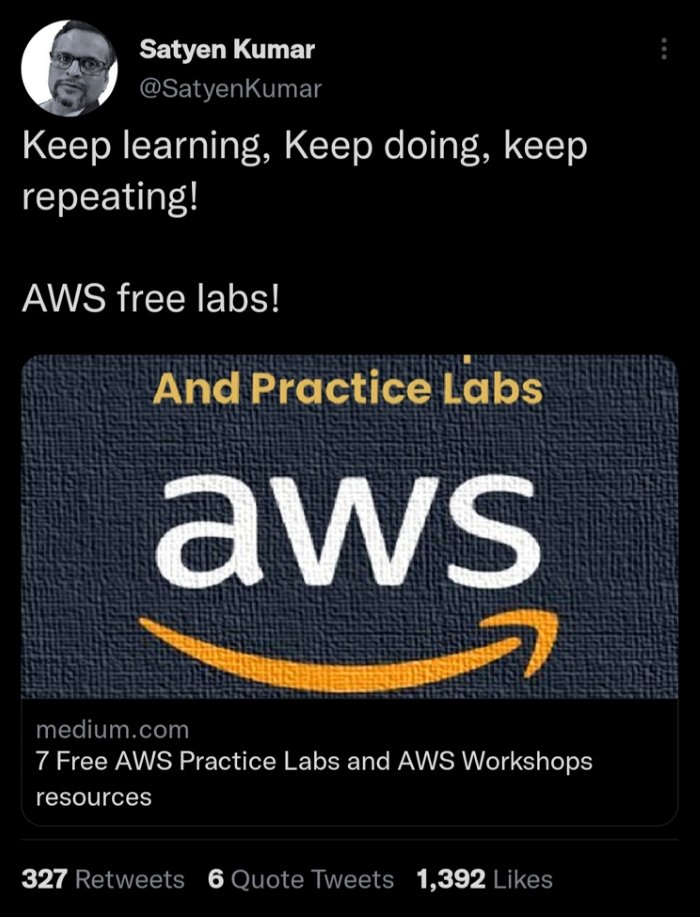 2. Validate your learning for free. Once you know about AWS services, products, and concepts, any other cloud would be easier to build. #aws