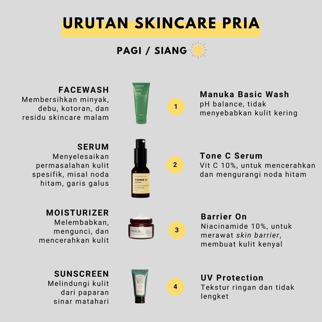 Rangkaian simple skincare routine untuk cowok! Mulai dengan basic skincare untuk mencerahkan wajah, membuat kulit lebih kenyal, merawat pori-pori, jerawat dan noda hitam. Checkout : linktr.ee