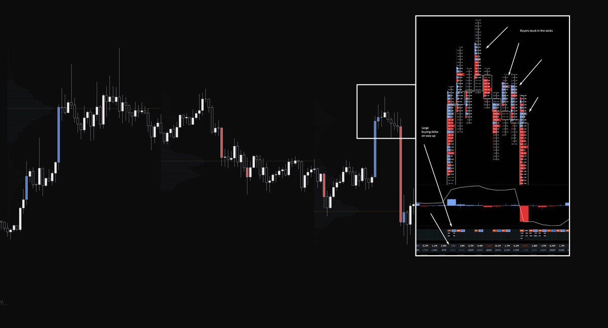 These situations happen in simple S/R levels, prior day/week/month highs and lows or in fast, thin moves to one side that are caused by news. Using something like a footprint or a relative volume will give you nice help to identify these offside positions.
