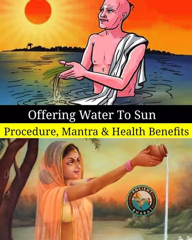Offering water to the SUN god is practiced during sunrise time and during this process, spectrum of sun-rays refract through the water impacting us positively from head to toe. As a result we automatically gain through the ‘water therapy of sun-rays.’