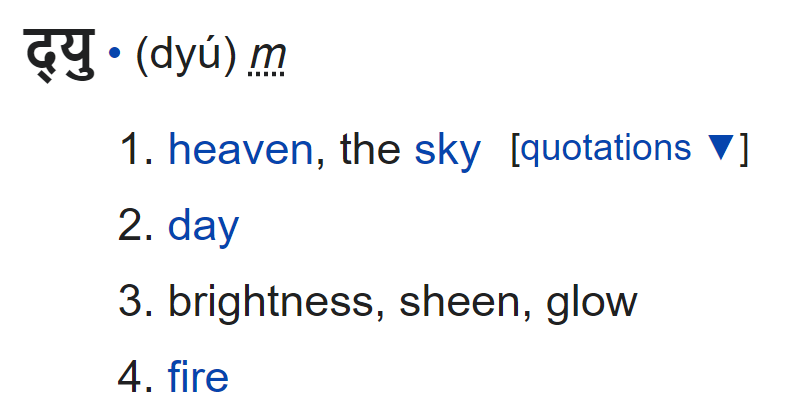 @avzaagzonunaada @aryaman2020 That mess has been mostly cleaned up, but it's still listed as a single root द्यु and listed as "masculine." द्यु here derives from दिव् as per the rule दिव उत् & both "दिव्" and "द्यो" are considered feminine. Masculine द्युः means fire (unlike feminine द्यौः, which means sky).