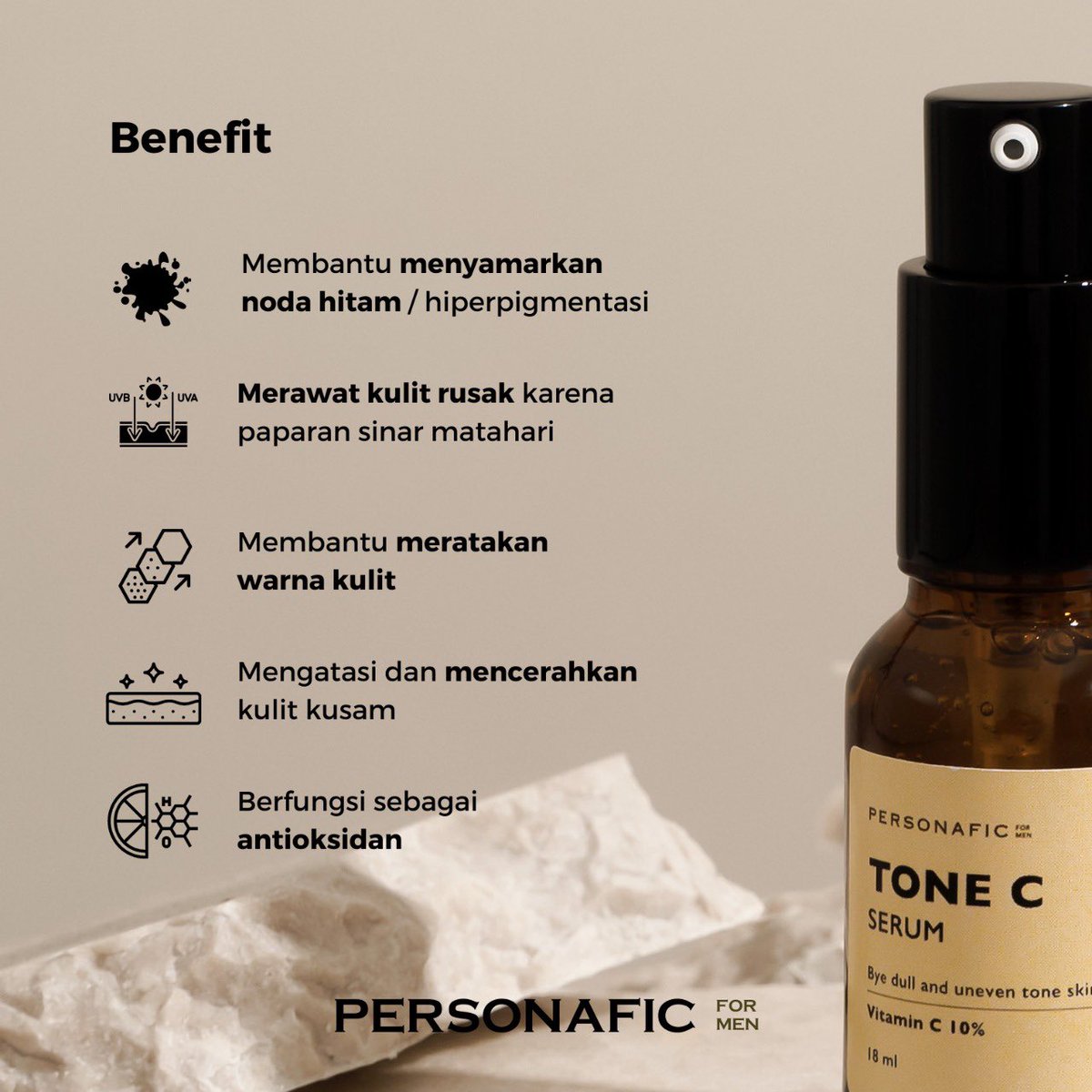 Serum khusus cowok yang fokusnya memperbaiki kulit rusak akibat paparan sinar matahari, seperti kulit kusam, noda hitam, kulit belang dan tanda penuaan. Kalau serum seperti ini asalkan penggunaan konsisten, anti dekil lah!
