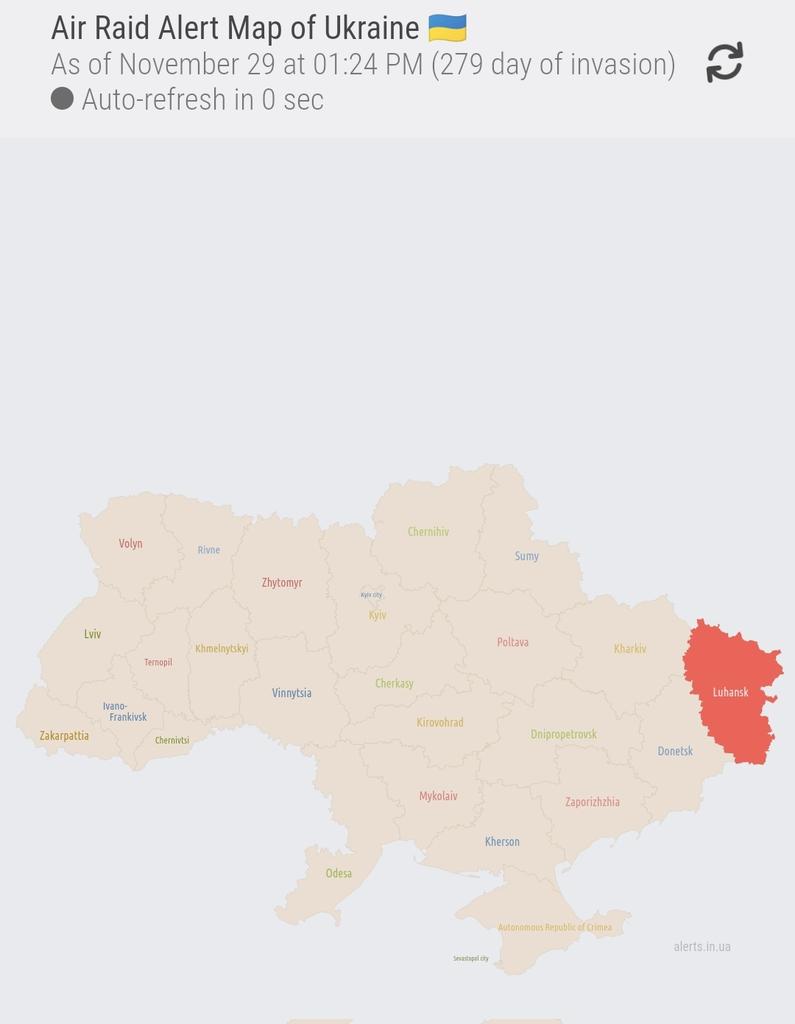 All clear (except for the permanent alert for Luhansk Oblast)