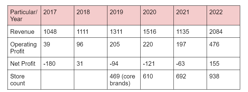 - The company has been aggressive in-store expansion over the past 2-3 years to get into tier 2 and 3 cities to address the growing urban and middle-class population and also address the millennials