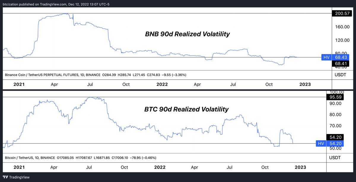 If it's used as collateral, explain how it trades with 2x the volatility of $BTC during the bull, but no excess vol in the bear...