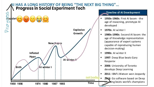 This is a stetch chart of historical AI winters, and it looks *exactly* like your "social science" chart on the right