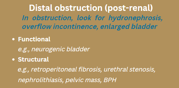 🪨Post-renal: urinary obstruction (distal to kidneys)