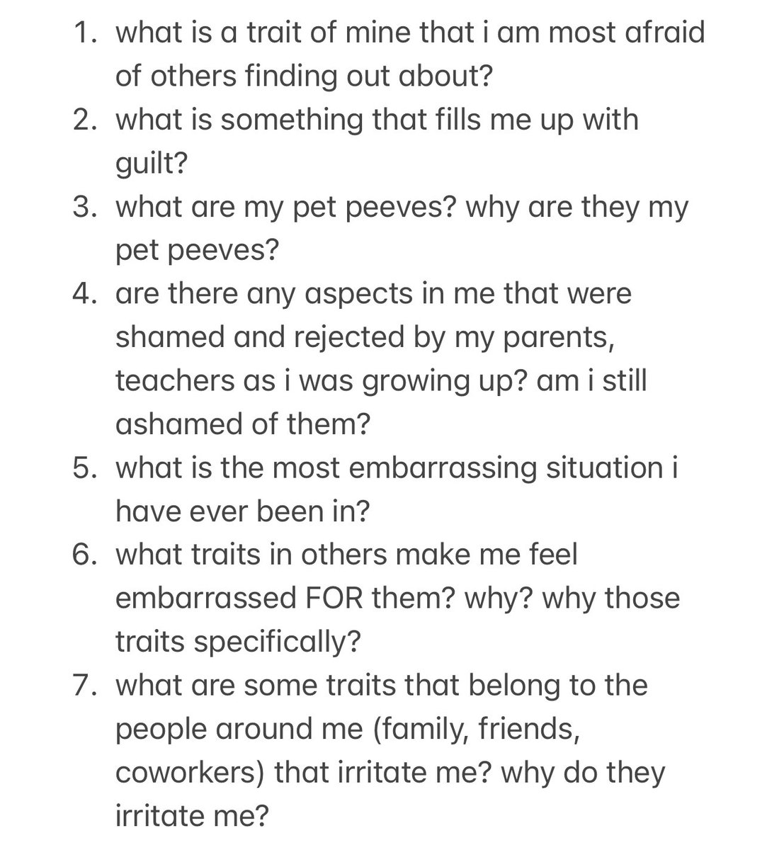 2. shadow work prompts. a great way to uncover your shadows without the help of external triggers. you answer questions that seem harmless, but when you truly start writing the answers, you will f e e l the resistance.