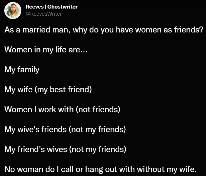 When I say that married men shouldn’t be friends with women, I’m not saying they can’t be acquaintances.