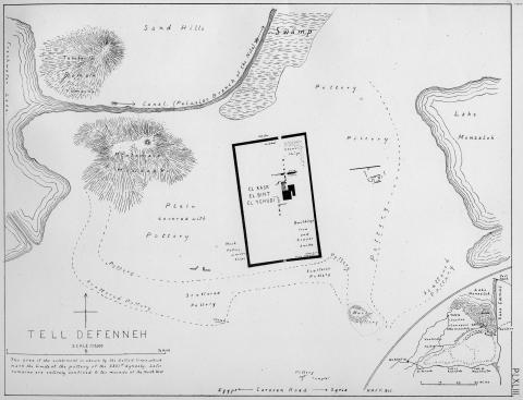Los griegos vivían en un inmenso campamento en Tell Dafana, cerca del Sinaí, donde se calcula que pudo haber 20.000 personas. Han aparecido miles de objetos griegos. Y no se quedaron ahí. Porque ser mercenario era, entonces como hoy, ver mundo.->