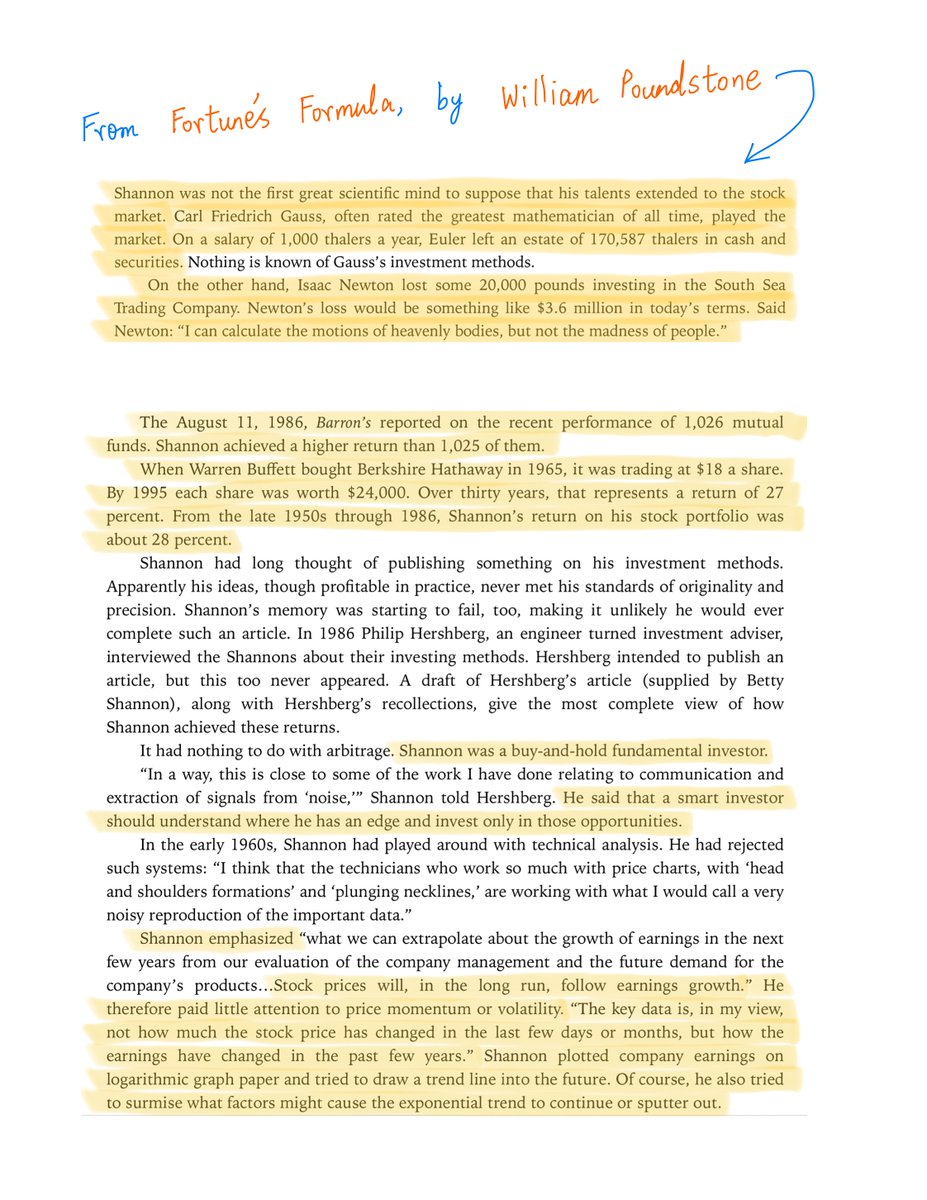 Perhaps it's NOT a coincidence that Shannon was ALSO a phenomenal *investor*.