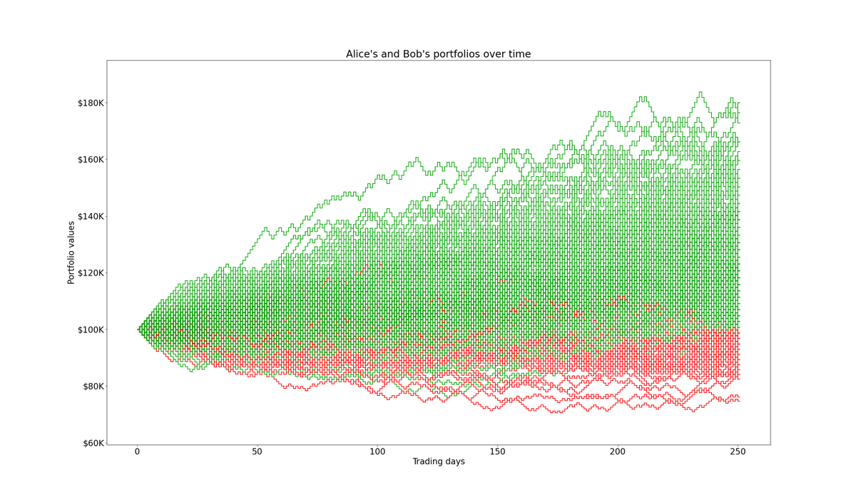 That is, each day, Alice compares her portfolio's value to what it was the previous day.
