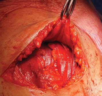 difficult to identify because of bleeding, which has led some to mistake the posterior wall of the lower segment for the lower edge of the uterine incision). This practice also allows clear identification of the uterine angles that are often secured first.