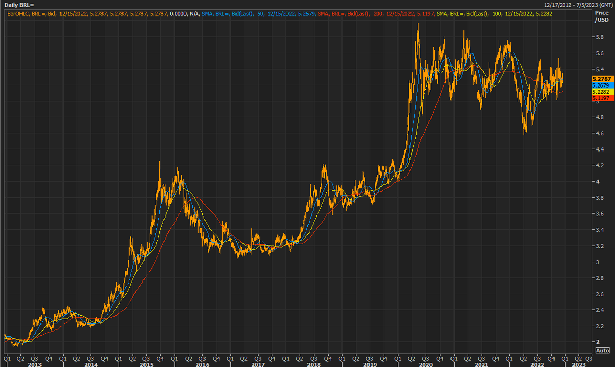 This is a great summary of relative CB hawkishness. Let's see how the currencies of countries with POSITIVE REAL RATES are faring against USD.