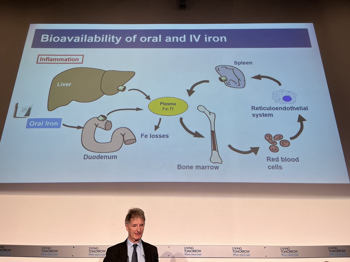 Elevated hepcidin shuts down this recirculating. Elevated IL-6 in CKD drives the high hepcidin levels.