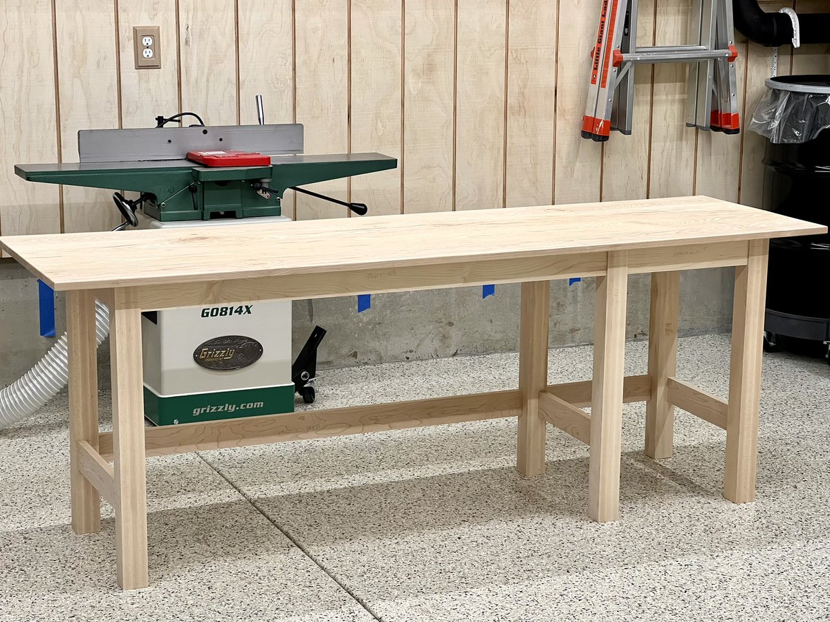 Started with the 7ft top, and thatโs almost done. Now need to figure out the frame. Iโm planning 3-4 drawers on the right, and two shallow drawers (side-by-side) just under the top. Top is ash, legs and frame will be hard maple. Why? Because thatโs what I have :)