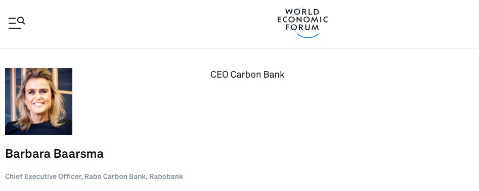 2. Let me introduce you to Barbara Baarsma. Barbara is the CEO of Rabo Carbon Bank. Yes, you read that right. Not Rabo Bank but Rabo Carbon Bank. In this 53 second video interview below she is advocating for a "Personal Carbon Wallet".