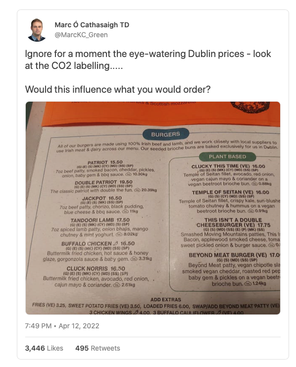 I've no idea what the criteria was that they used for measuring the CO2 levels but the point is restaurants are beginning to trial this.