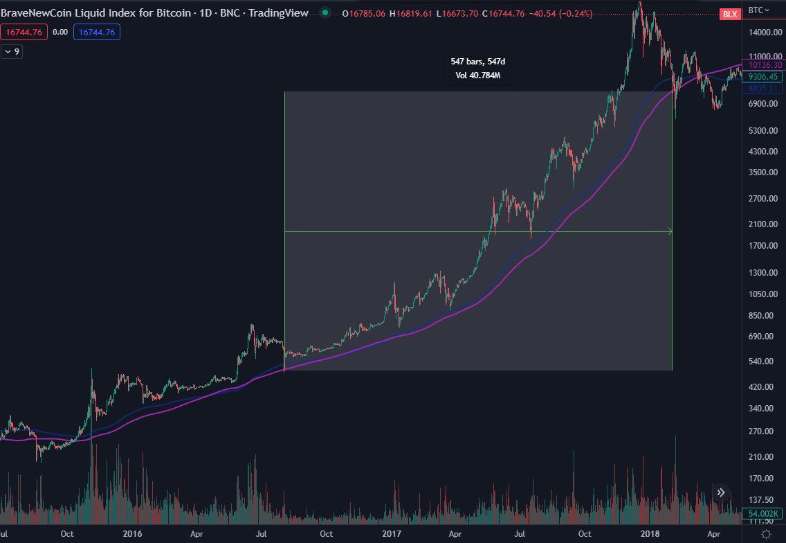 Bonus: The longest time $BTC went without touching the Daily 200 Moving Average during a bull market was in 2017. Bitcoin traded above the Moving Average for a total of 547 days.