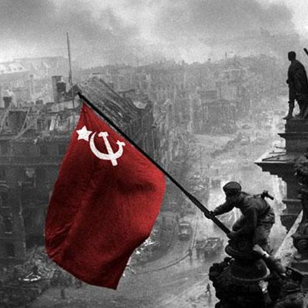 Pasca suksesnya Revolusi Oktober 1917 yang dipimpin oleh Vladimir Lenin dalam menggulingkan Pemerintahan Sementara yang dipimpin oleh Alexander Kerensky, Bendera Merah polos pun berkibar dan menjadi simbol Soviet Rusia.