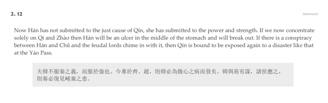 “I have not heard of wearing out troops in order to make a surprise attack on a distant place. The troops will be worn out and their strength spent; besides, the ruler of the distant place would be prepared for them.” The Qin ruler, anxious for gain, ignored this warning