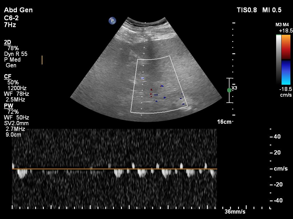 20/ My interpretation of VEXUS is Grade I: normal hepatic vein, mild portal vein pulsatility and biphasic renal vein flow. But pancreatitis is a 'leaky' state, so VEXUS is often not very abnormal as fluid readily leaks to the tissues.