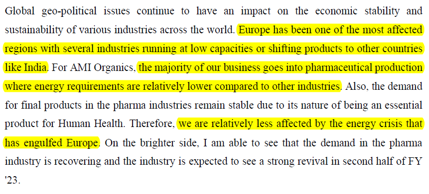 The company is getting 58% of its total revenues from Exports as of FY22 out of which around 70% is contributed by Europe