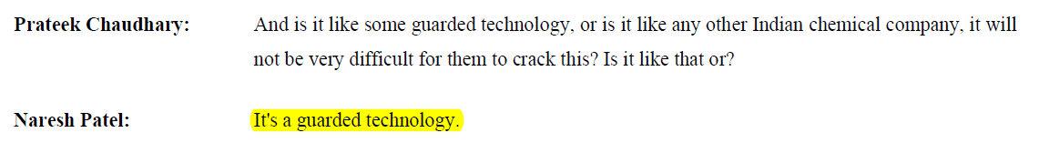 The company makes both FEC and VC which are used as additives in the electrolyte solution which goes into Li ion batteries. The company has sent its samples to various customers and within 1 year time, the company was able to get