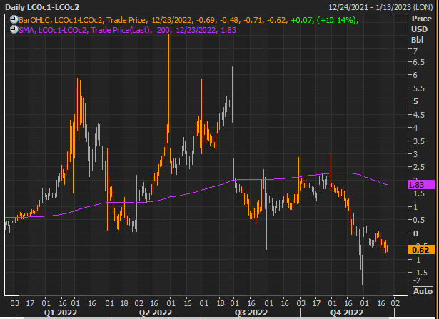 Noticed the flip back to Backwardation this am as well. Watching this and RUB perking as signs of EU Embargoes forcing Russian shut-ins. Not sure if forces of Supply Curtailment can win over forces of Demand Destruction in the ST, but it is the key variable.