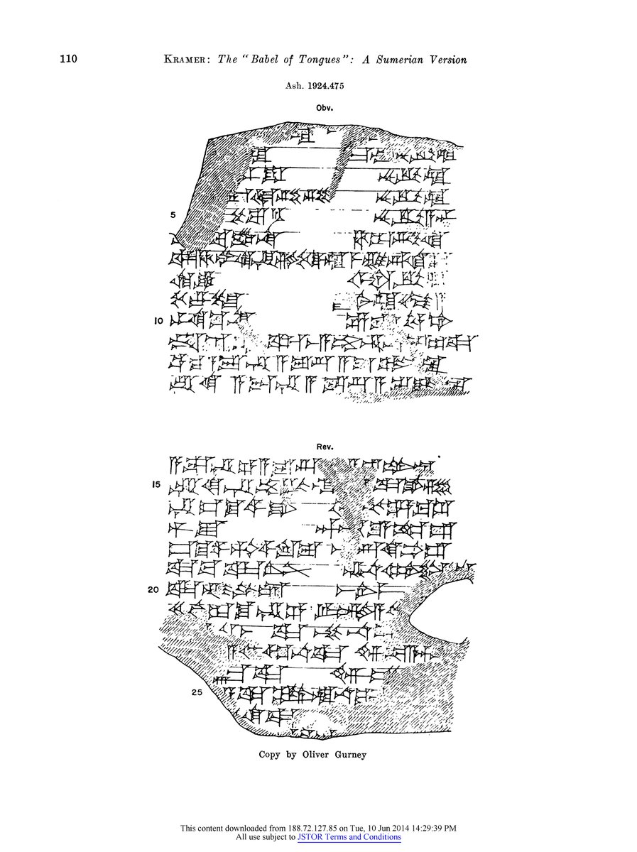 Çok tanrılı sisteme sahip Sümer bile eskiden tek tanrıya tek dille inanıldığını kaydetmiştir.