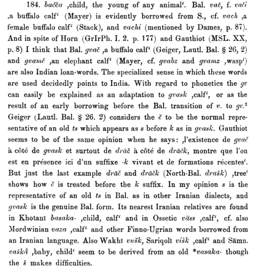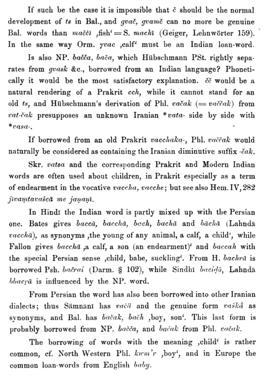 @kadagxwaday @PhDniX Off topic, but I've read that Persian bacca بچّه was possibly borrowed from an Indic language itself. Compare with Hindi bacchā (Skt. vatsaka) for "cow's calf." In that case, it would be a loan from Middle Indo-Aryan into Persian and back into Hindi.