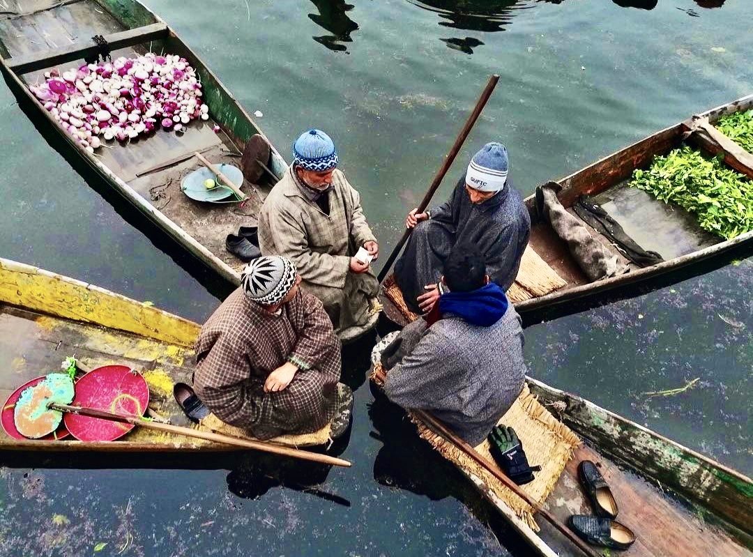7/ The Sabji Bazaar (meaning vegetable market) is a fascination in the valleys of Kashmir. It is a floating market where individual sellers gather in the center of the lake at the break of day and wrap up just as the sunlight touches the water.