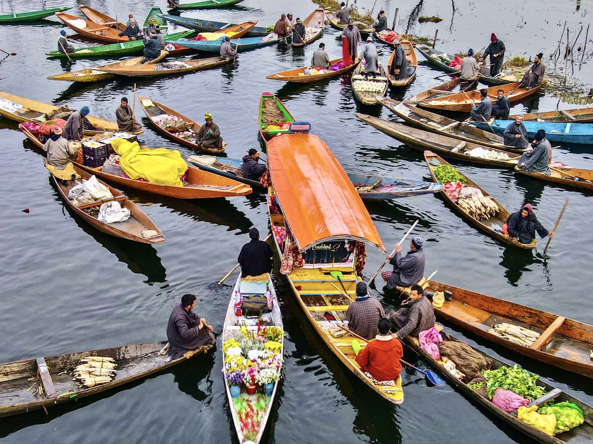 Welcome to the floating Sabji Bazaar (meaning vegetable market) of Jammu & Kashmir. Every morning, the vegetable cultivators of Dal Lake sail with their freshly loaded vegetables - a fascination in the valleys A thread on the spectacular floating vegetable market of Dal Lake…