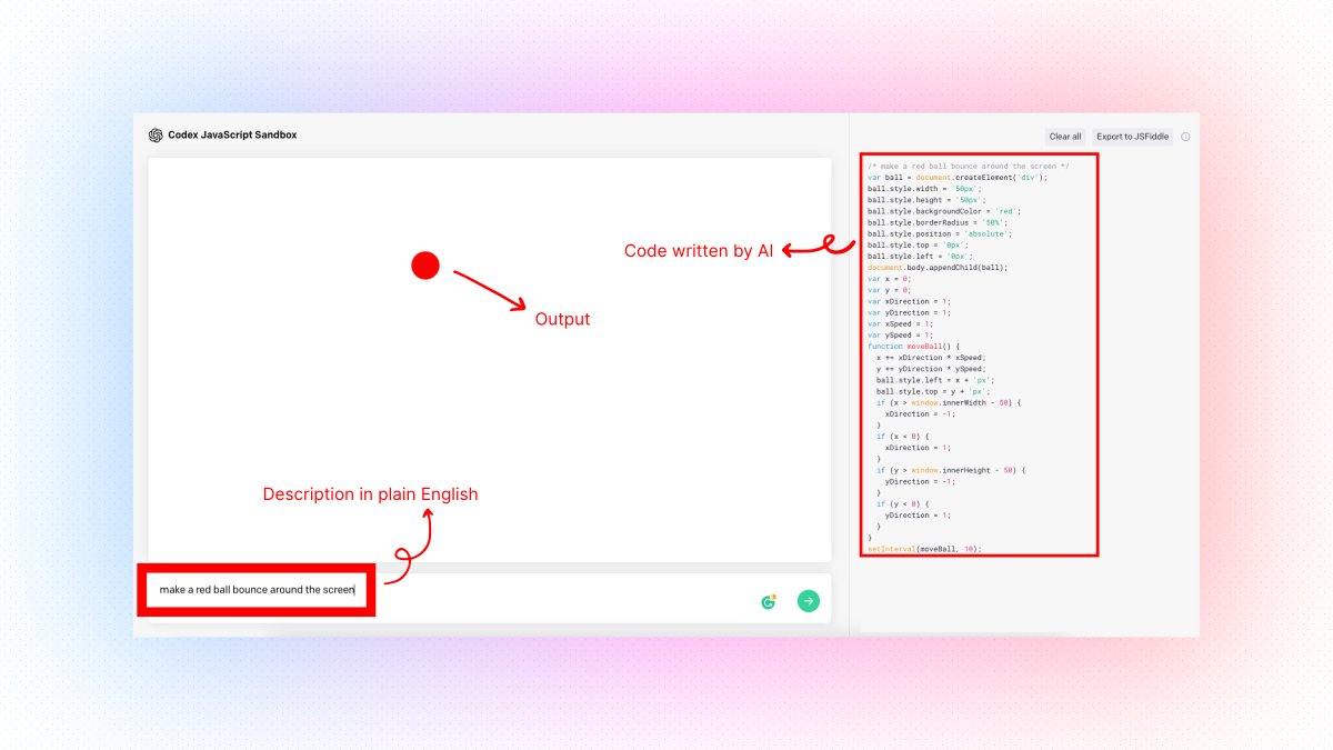 For example, "make a red ball bounce around the screen"