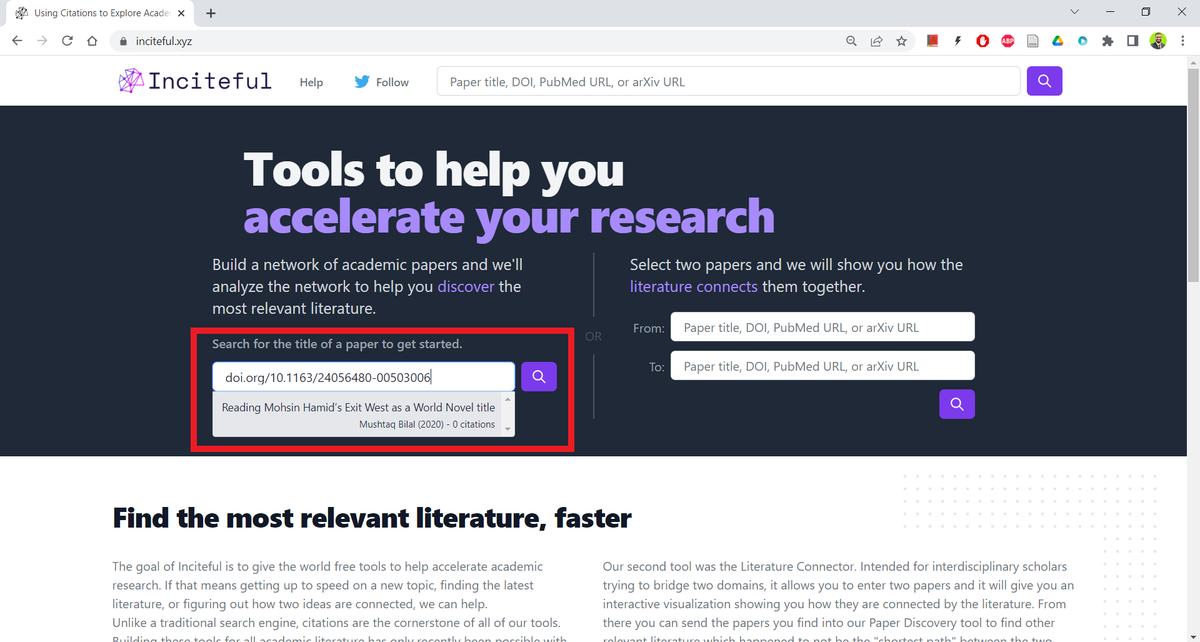One of the most efficient apps to kickstart your literature review: Inciteful