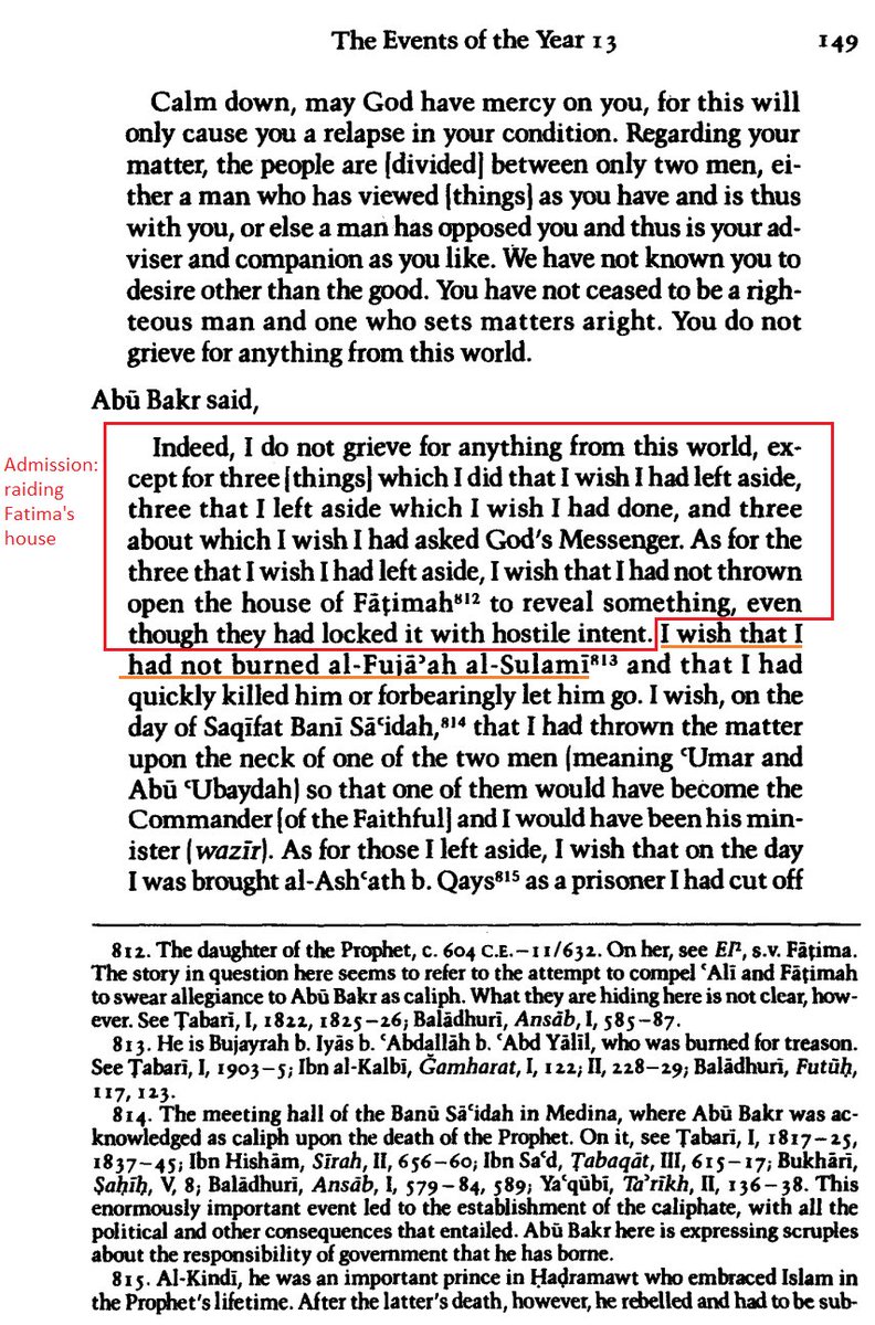 Abu Bakr regrets raiding Fatima (AS) house on his death bed and how Sunni 'Science of Hadith' weakens narrators who exposed the crimes of their Caliphate against Fatima🧵