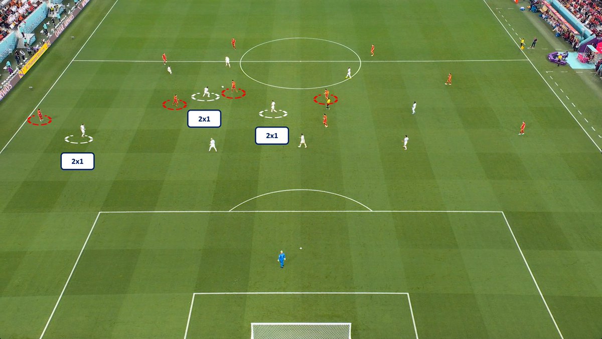 In the center of the pitch - where there is not much space - we are not always able to create a 2x1 situation.