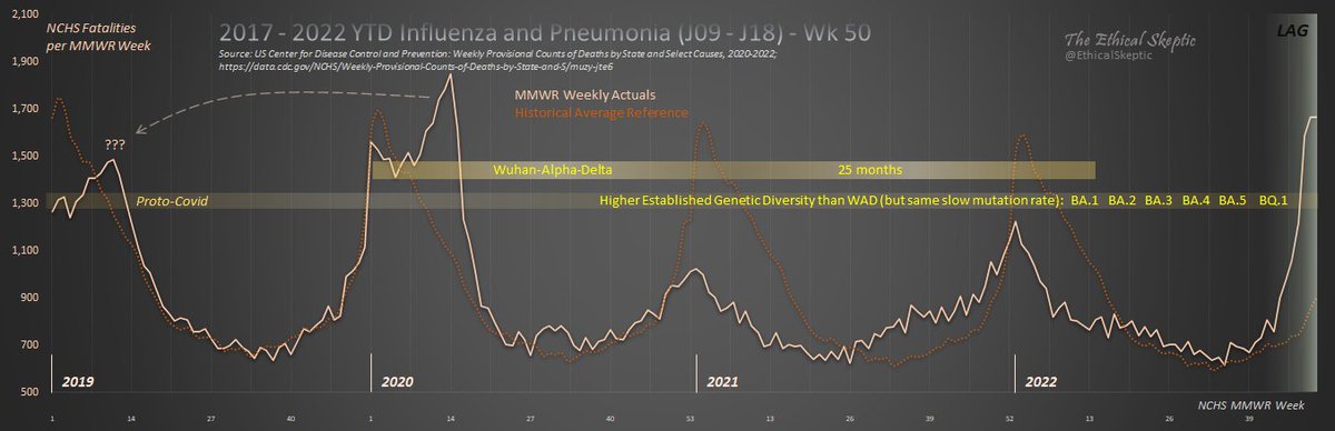 Meanwhile our early-season influenza-pneumonia mortality has hopefully hit a peak. But with what we have observed about NIH data - holiday reporting can serve to mislead.