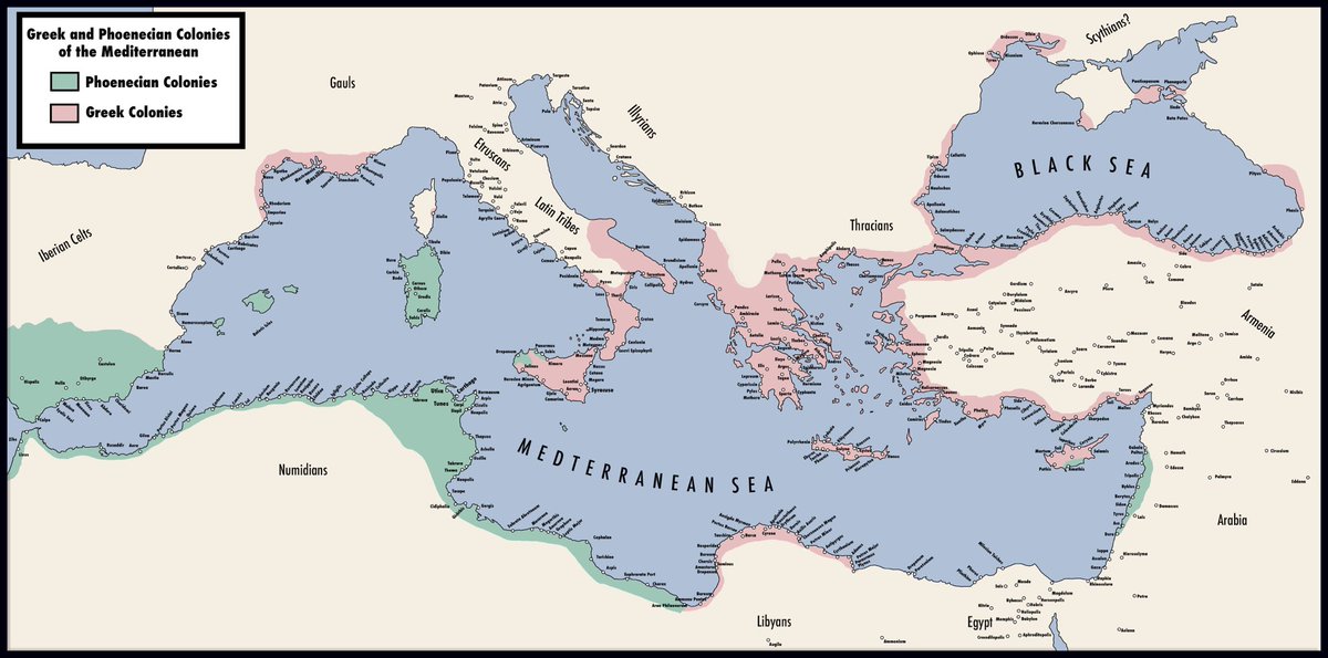 The two great seafaring & colonizing cultures of the Mediterranean were the Phoenicians & Greeks. These two engaged in an epic rivalry over trade, land, & military supremacy. The leading edge of this race to bring more land into their control was expeditions into the unknown.