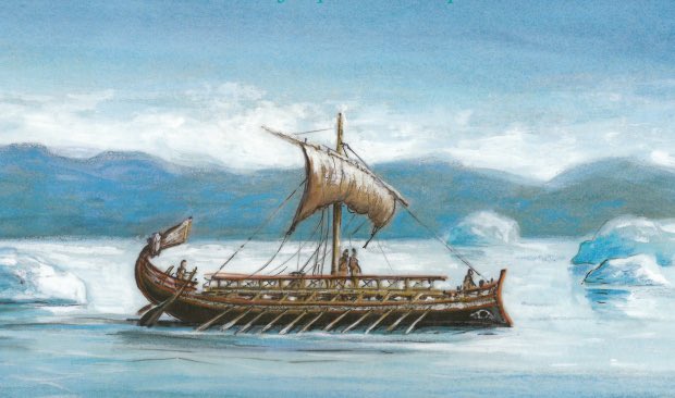 Pytheas sailed to Thule, modern Norway, where he described mead, the midnight Sun, & massive fields of drift ice which prevented his exploration further north. This ocean of fog, ice, & slush under the constant, weak light of the Arctic Sun marked the world’s edge for Pytheas.