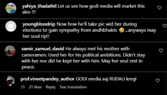 One Samir Samuel then claimed that PM Modi exploited his mother to further his political ambitions. “Godi Media will cry now,” wrote another user.