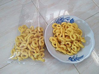 Adonan yang sudah tadi di aduk dan diuleni sampai kalis, lalu dibentuk angka delapan yang nantinya di goreng pada minyak panas. Cita rasa gurih dan asin akan kamu rasakan dari campuran bawang putih dan garam.