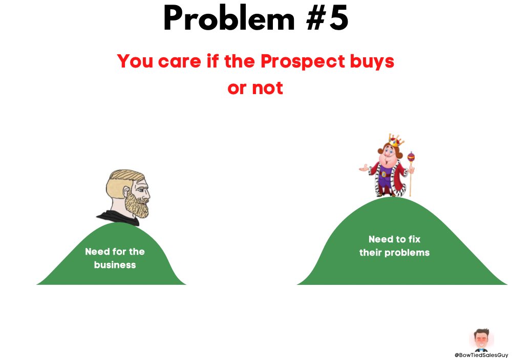 Most salespeople ask journalistic questions that don’t actually add any value / status to the conversation