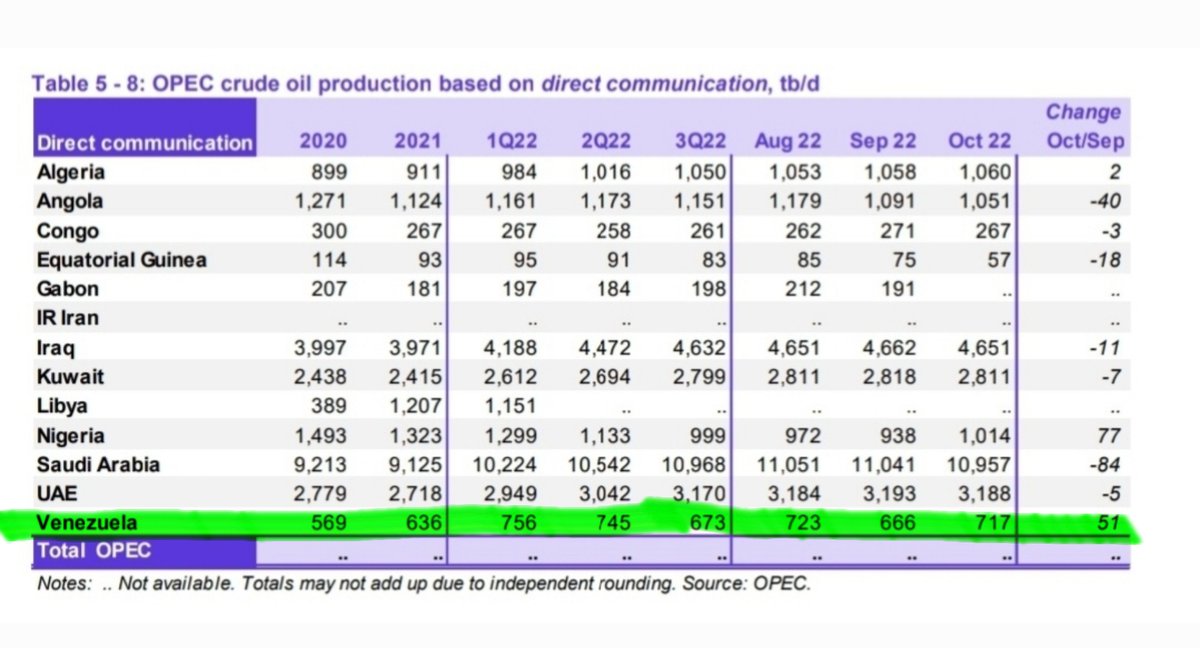 Según la data que le pasan mensualmente a la OPEP @OPECSecretariat, en los primeros 10 meses del 2022 produjeron un promedio de 723.900 b/d.
