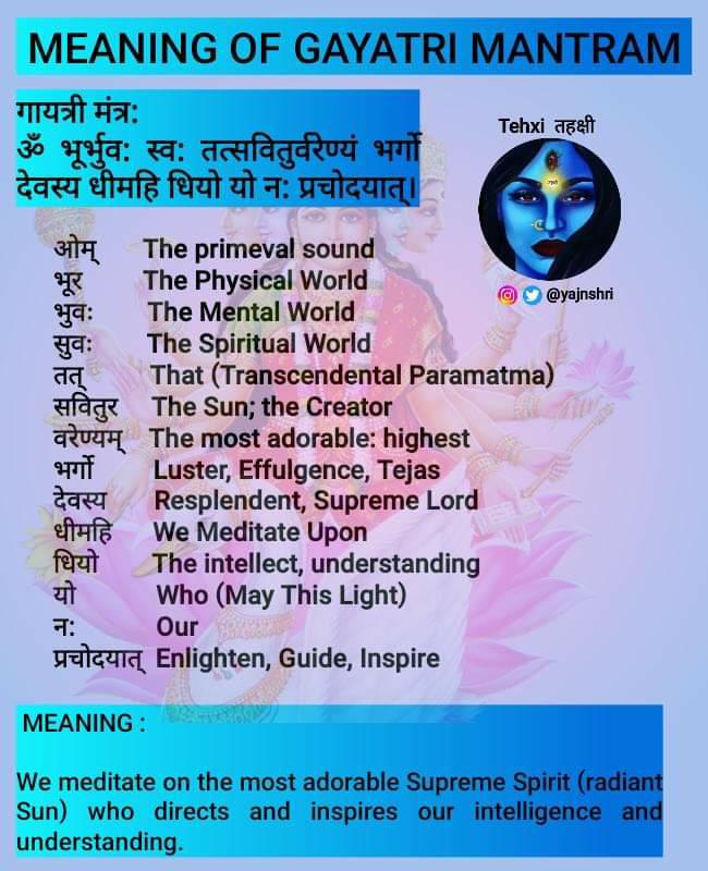 पांच देवता भी प्रसिद्ध हैं- ॐ - गणेश । व्याहृति-भवानी। प्रथम चरण - ब्रह्मा। द्वितीय चरण- विष्णु । तृतीय चरण महेश।